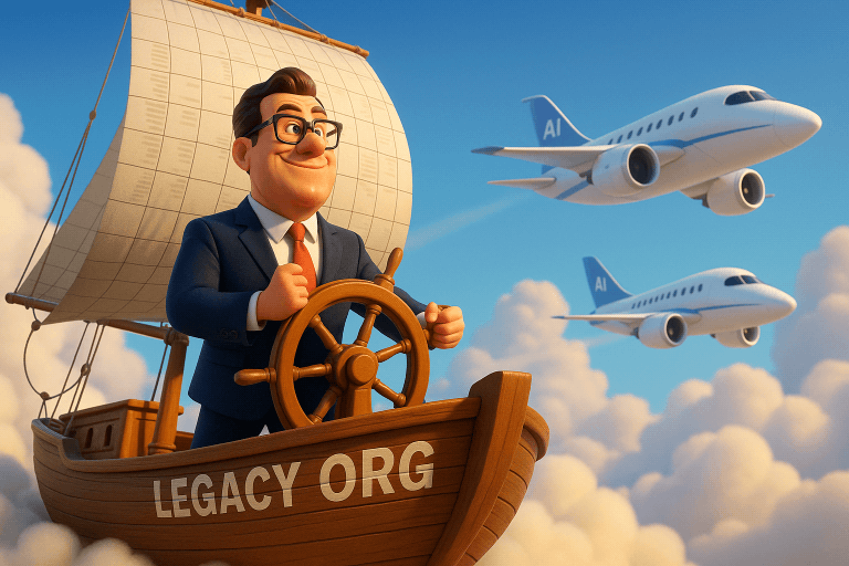But here’s what should keep every CEO awake at night: AI is the jet age of intelligence. Insight now travels at the speed of light, yet most companies are still steering their organizations like wind-powered ships—creaking through fog, waiting for permission to set sail.