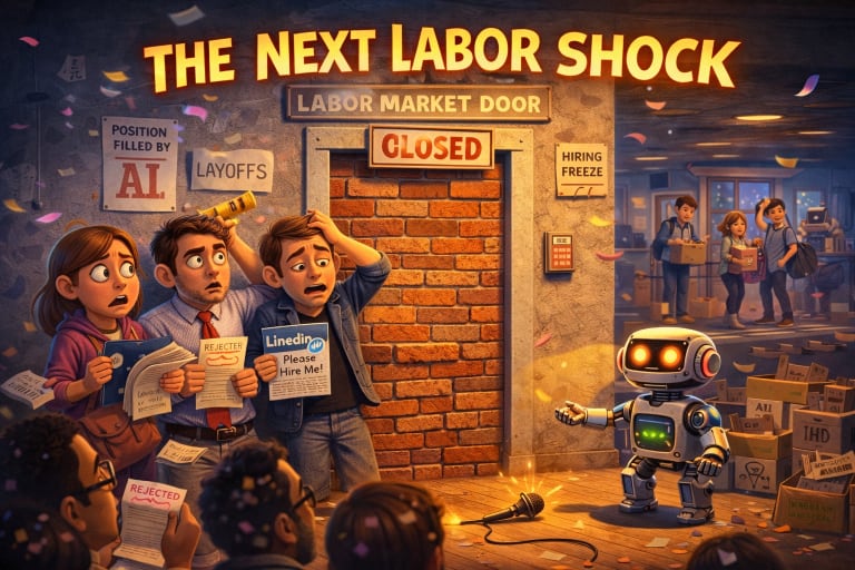 What's actually happening is quieter, messier, and, in some ways, more damaging than either headline suggests, because it doesn't look like a crisis. It looks like a hiring freeze. A team that stops backfilling. A job posting that goes up, then disappears. A cohort of graduates who apply and apply and apply and hear almost nothing back.